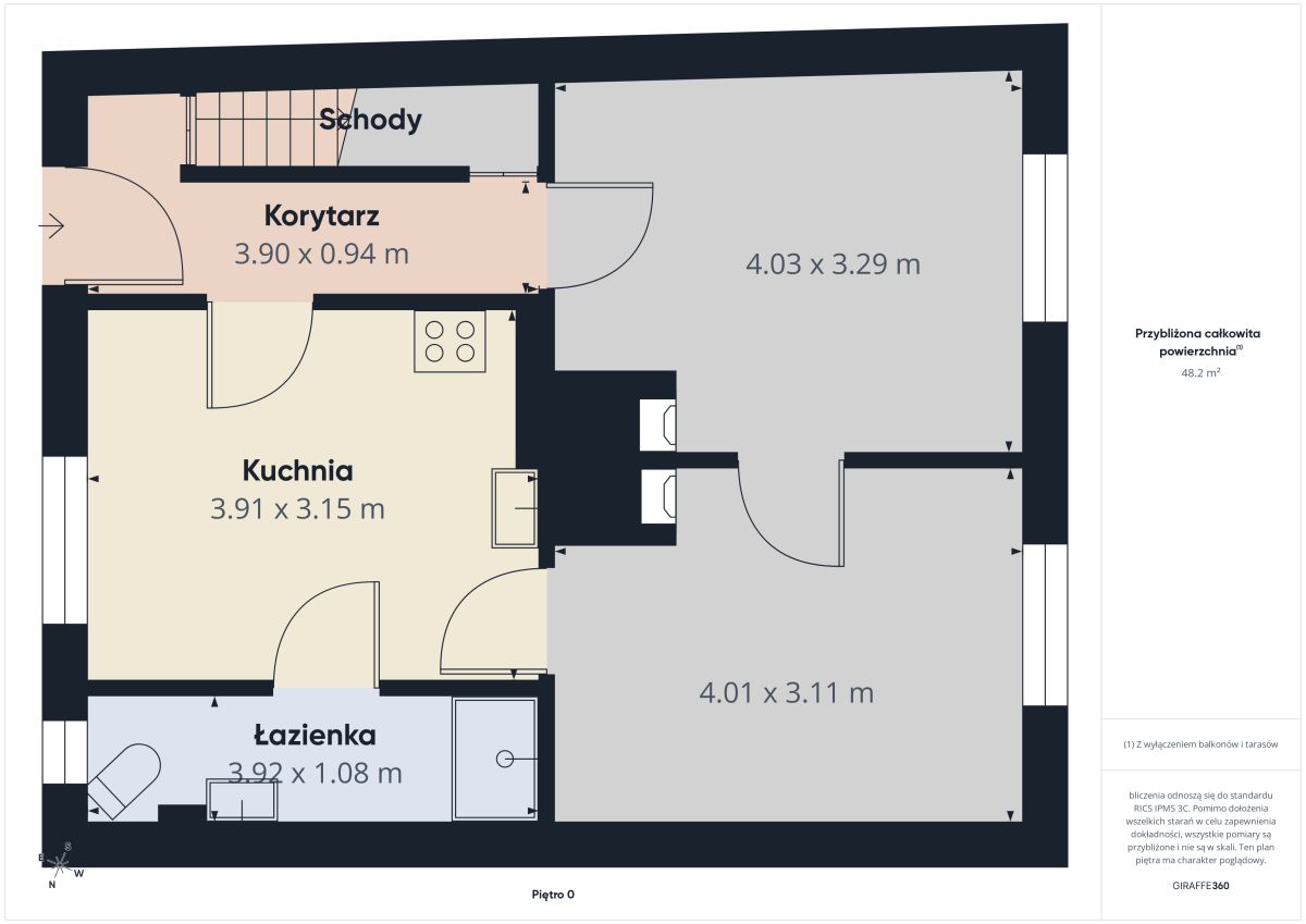 Parter: • 2 pokoje • kuchnia • łazienka • hol • klatka schodowa