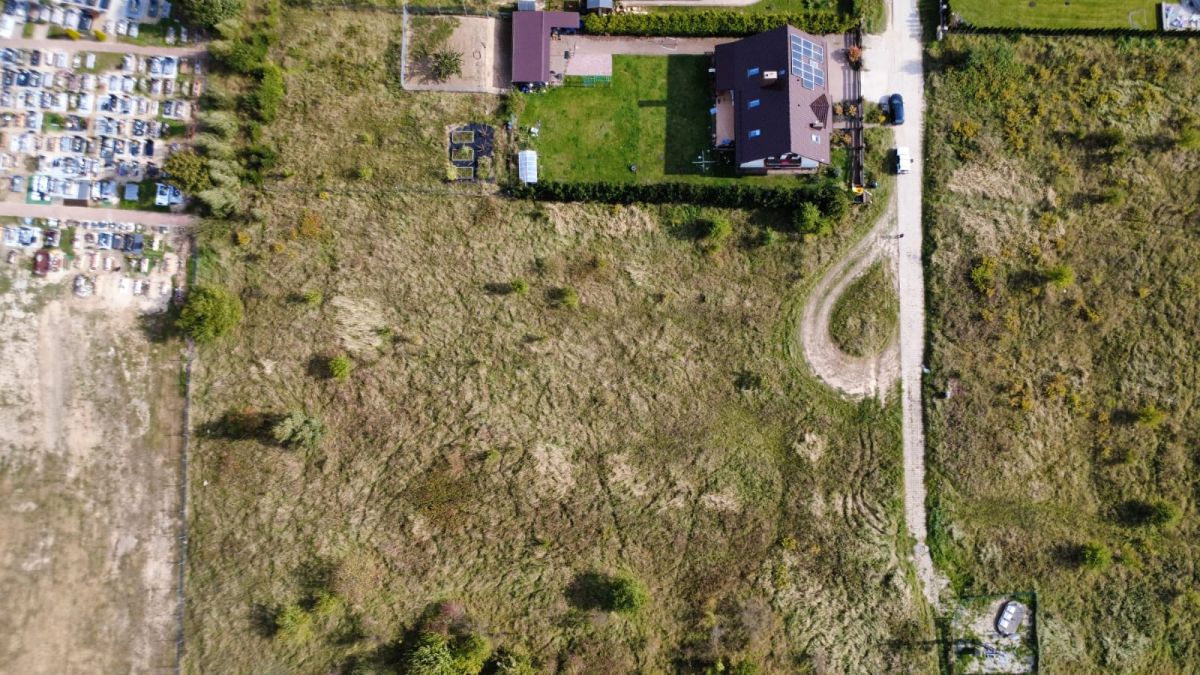 - Teren: lekko nachylony w kierunku południowym, kształt zbliżony do prostokąta, brak ogrodzenia, wjazd polny.