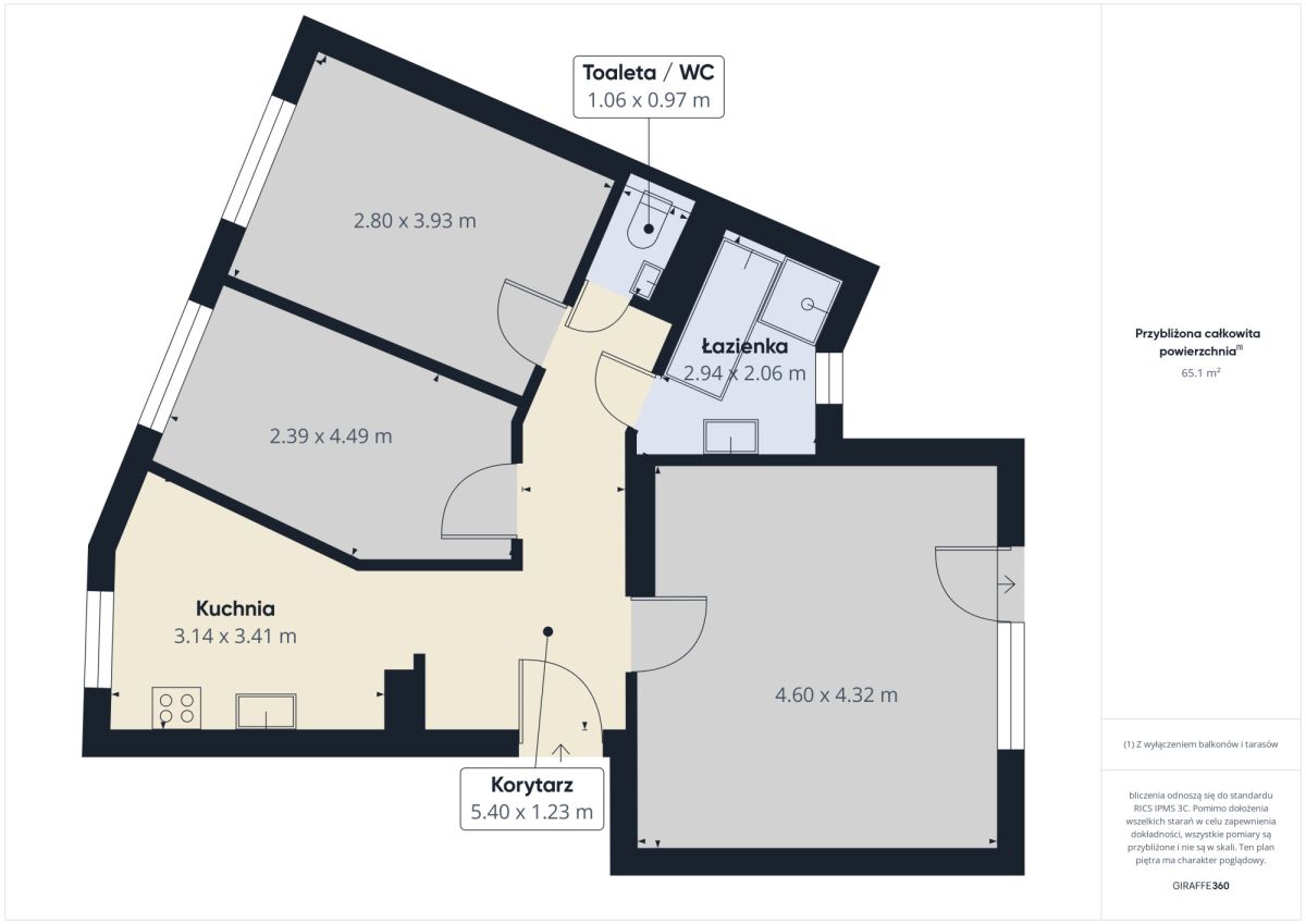 • Powierzchnia mieszkania: 66,6 m²