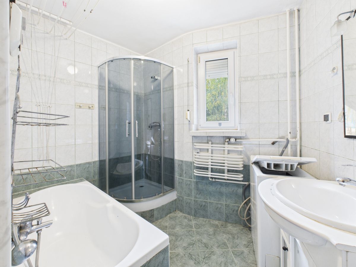 - łazienka z wanną i prysznicem,