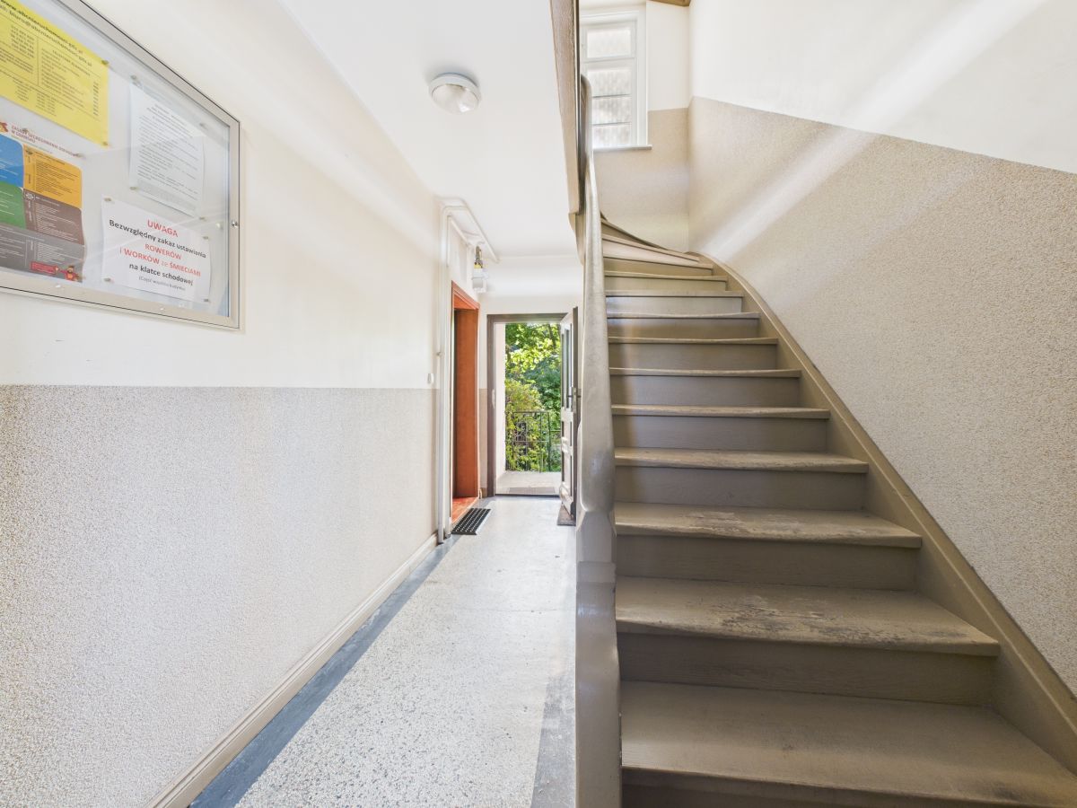 Budynek, w którym znajduje się mieszkanie, jest ocieplony i zadbany, z czystą klatką schodową po remoncie. Wejście zabezpieczone domofonem. Dla mieszkańców dostępne są liczne, bezpłatne miejsca parkingowe za kamienicą.
