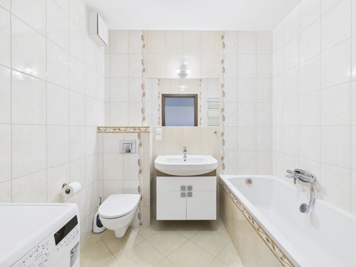 - Łazienka z wanną, armaturą wysokiej jakości i nowoczesną ceramiką.
