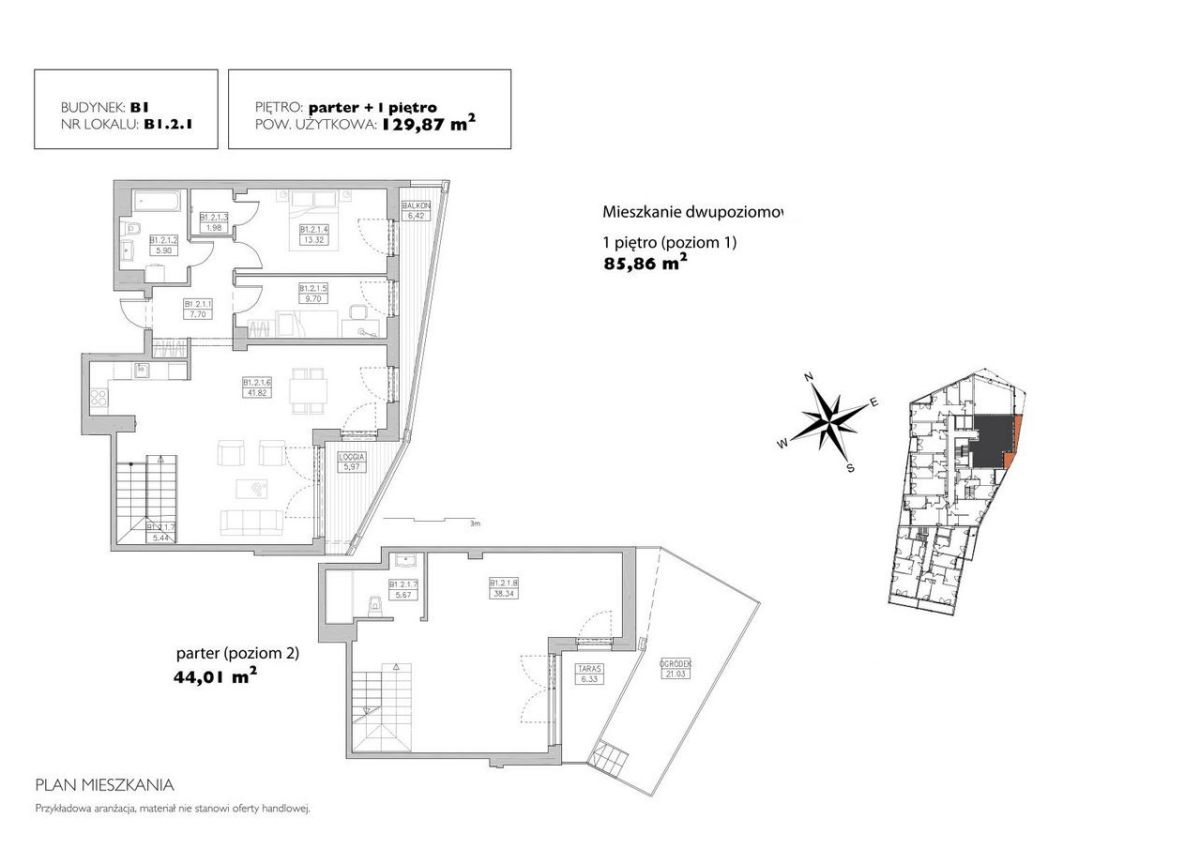 Dwupoziomowe mieszkanie z ogrodem i balkonem - 129,87 m²